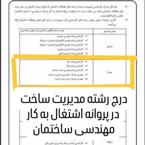 مدرک کارشناسی ارشد فارغ‌التحصیلان رشته مهندسی و مدیریت ساخت در پروانه اشتغال به کار مهندسی ایشان درج خواهد شد.